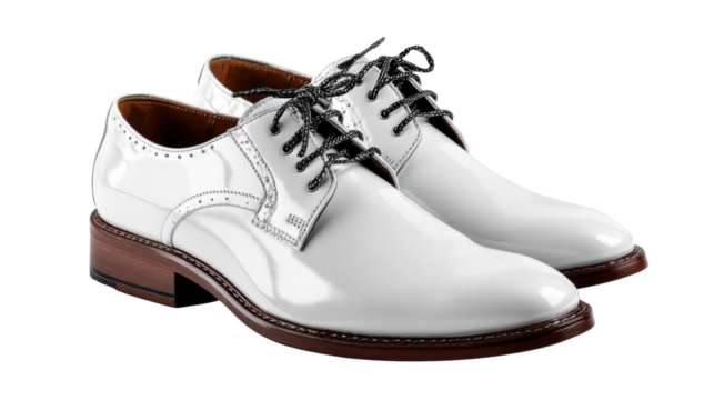 Elegance in Every Step: a pair of pristine white leather shoes, exuding sophistication and style, poised to elevate any ensemble with timeless charm.
