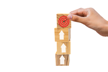 Wooden blocks with track word for progress monitoring concept, isolated on transparent background
