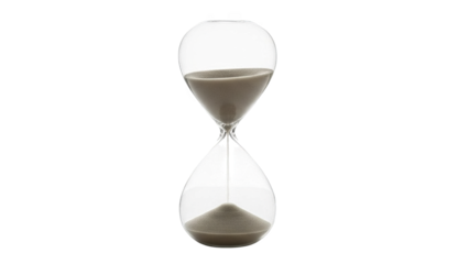 Hourglass with falling black sand isolated on a transparent background