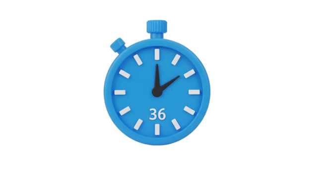 A blue 3d rendered stopwatch icon displaying a time value on a solid black background