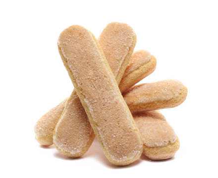 Ladyfinger savoiardi biscuit cookie isolated on white, side view