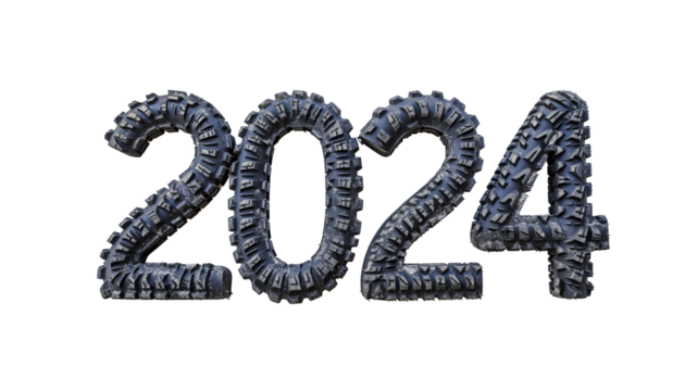 Creative 2024 numerals made from tire tracks texture isolated on transparent background, concept for automotive industry or off-road adventure