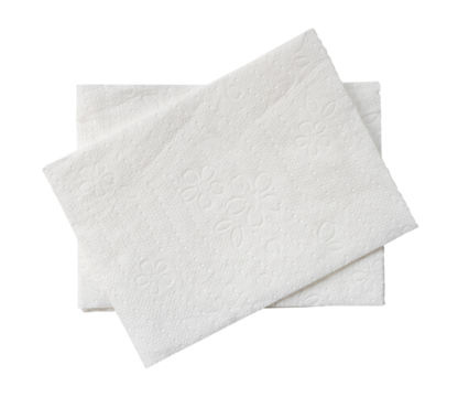 Top view of two folded pieces of white tissue paper or napkin in stack isolated on white background with clipping path in png file format