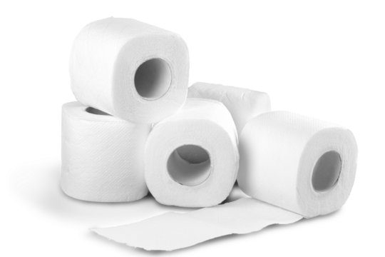 Roll of white toilet paper hygiene household item isolated on a transparent background