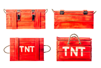 Isolated photo of wooden red colored tnt explosives box on white background.