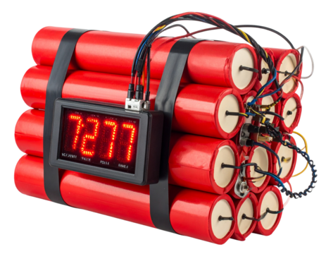 Tnt dynamite bomb explosives with a digital timer counting down on transparent background