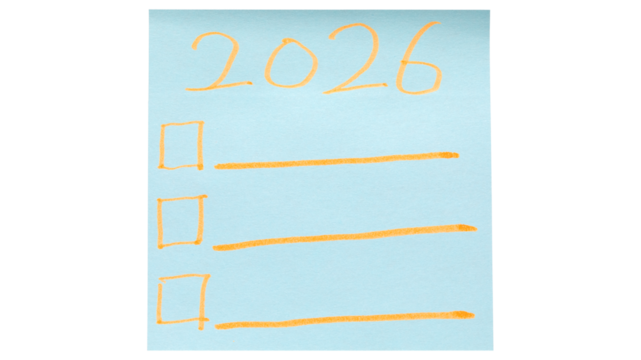 2026 goals list on transparent background. New year resolutions 2026 on white paper,New Year planning and resolution, goals, action, checklist, expectations concept.to do list on note
