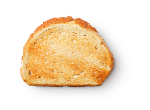 white crusty bloomer toasted slice with shadow isolated on transparent background