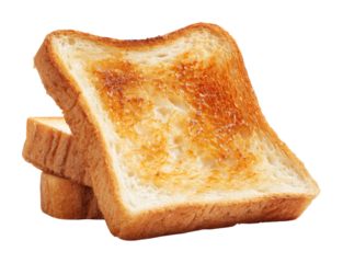 Two slices of toasted bread are shown against a black background, on transparent background , png