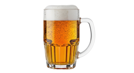 Refreshing lager brew in a dimpled glass stein with frothy head ready to drink and enjoy the taste on transparent background
