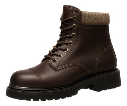 Brown and black hiking boots isolated on a black background, ready for adventure