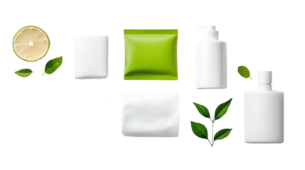 Variety of refillable transparent cosmetic tubes and bottles for shampoo and body wash on transparent background, showcasing multiple shapes and sizes for travel toiletry use