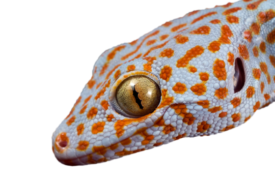 Tokay gecko, cut out on PNG, isolated on white background. AI GENERATED.