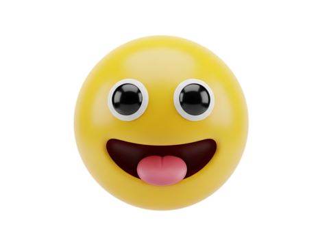 Playful emoji face with tongue sticking out on transparent background
