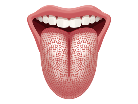 Illustrated representation of human anatomy showing mouth teeth and a detailed tongue structure