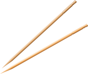 Wooden toothpick. Sharp bamboo sticks for teeth. Wood skewer with pointed tip. Disposable bamboo thin long skewer. Realistic vector illustration isolated on transparent background.