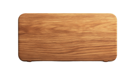 A close-up top view shows a rectangular wooden board with softly rounded corners and a visible wood grain.