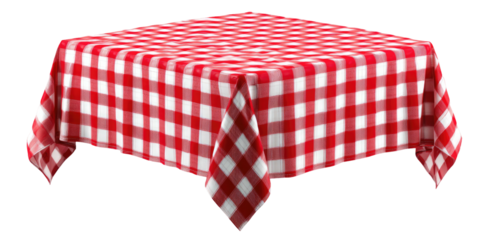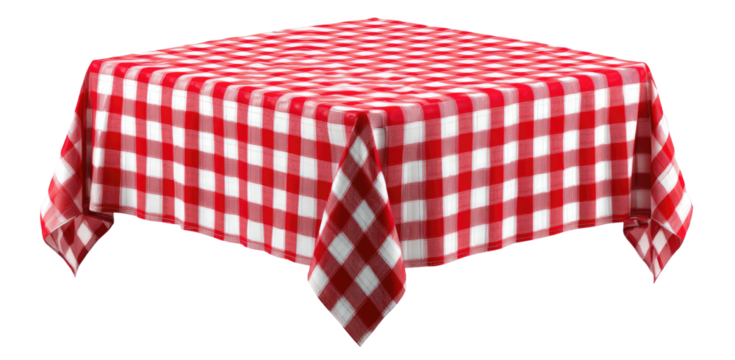 A red and white checkered table cloth, displayed with its corners and edges visible