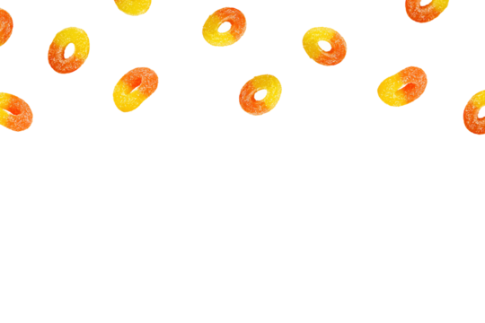 Peach Rings on Top Edge -  Flat lay Image - Top View -Free Style - Gummy
