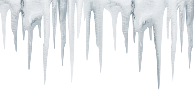 Row of sharp translucent icicles hanging down from the top edge against a solid
