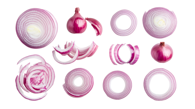 Top view set of yellow lemon half and slice or quarter isolated with clipping path in png file format