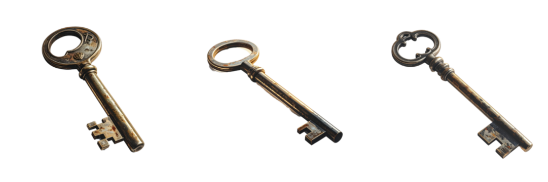 Golden key on transparent background illustrating secrets
