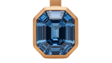 Isolated faceted blue topaz gemstone pendant in gold setting beautiful jewelry design