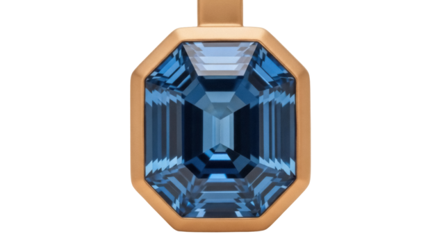 Blue topaz gemstone pendant in rose gold isolated on transparent background