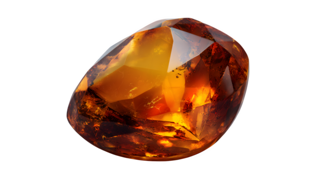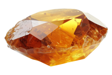 Polished topaz gemstone with amber glow, photorealistic, isolated on transparent background