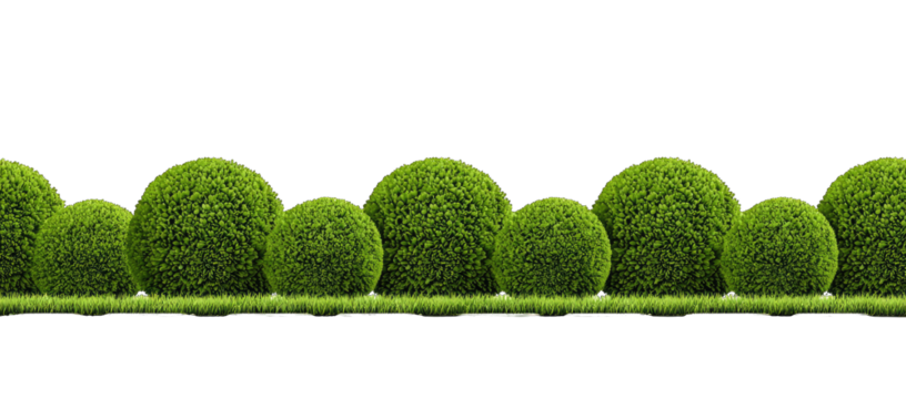 A group of topiary plants on transparent background