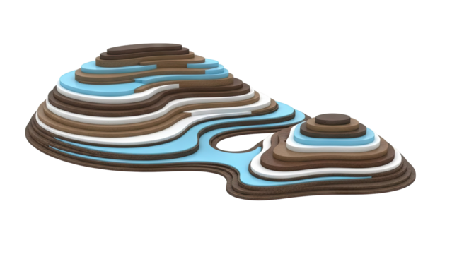 Abstract topographic map design with layered paper cut effect in vibrant colors