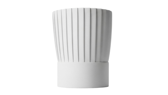 Chef s hat PNG isolated on transparent background, classic pleated toque for culinary professionals and restaurant industry use