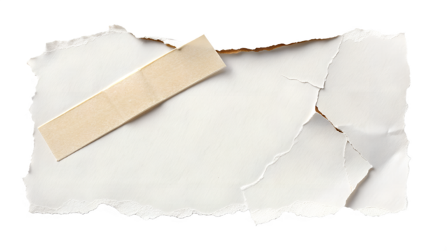 A blank white paper sheet torn at the edges, taped to the top with brown tape