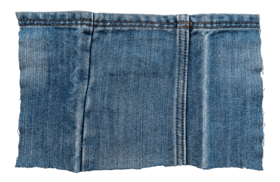 Empty worn leather patch on blue jeans on a white background. Empty space for writing. Blank leather jeans label