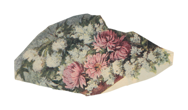 Cut fragment of a vintage floral artwork with classic textured style, isolated on transparent background for design and creative projects