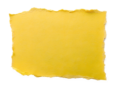 A torn piece of yellow paper with rough edges, isolated on a transparent background
