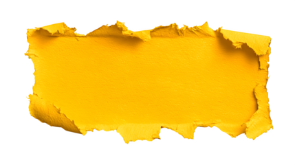 A torn piece of yellow paper with rough edges, isolated on a transparent background