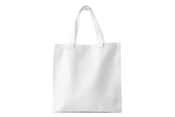 Pure white tote bag mock up showcased against a transparent background, perfect for showcasing design and branding in the fashion and retail industry