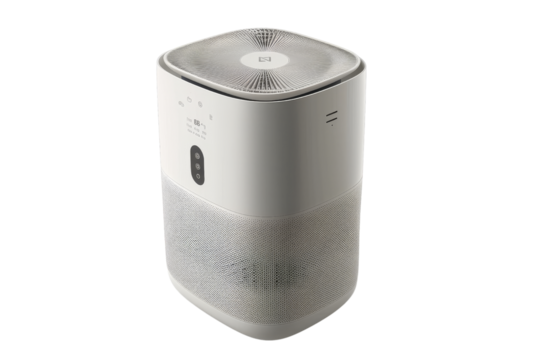 Minimalist Aesthetic Modern Water Dispenser Purifier with a White Body Compact Purification Dispensing Machine for Home or Office with Touch Controls on Top and a Clear Water Level Indicator on PNG