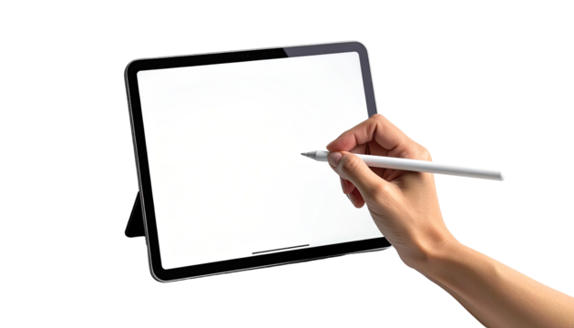 Sleek tablet device with stylus actively drawing on screen, showcasing modern technology and digital creation.