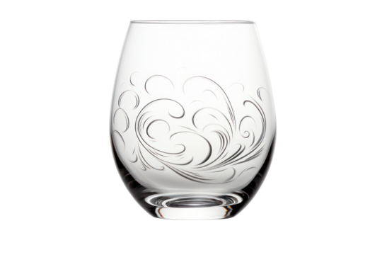 A glass with a personalized engraving or etched design, adding a touch of individuality. Isolated on a white background.