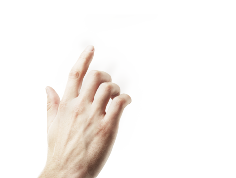A human hand with fingers extended, pointing upward. The image is isolated with a white background, showing a concept of touch or push action