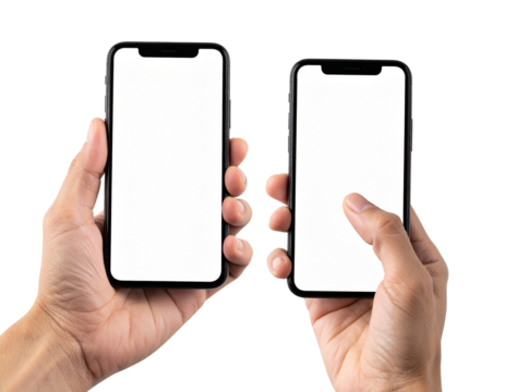 Two Hand-Holding Smartphone Mockup Variations in One Frame, isolated on transparent background