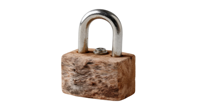 Weathered Padlock: A weathered and rusted padlock, revealing the passage of time, symbolizing security and protection amidst the elements, while subtly evoking a sense of history.