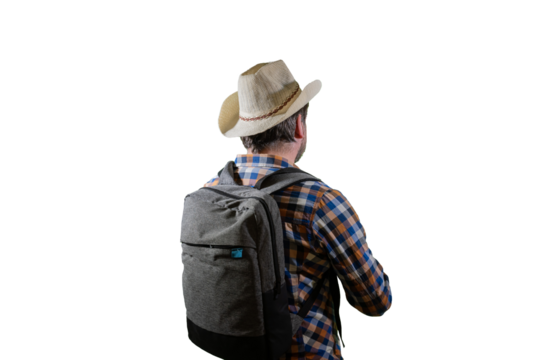 Portrait happy man with summer holiday beach outfits isolated on transparent background for realax at beach on vacation, travel and holidays vacation concept.