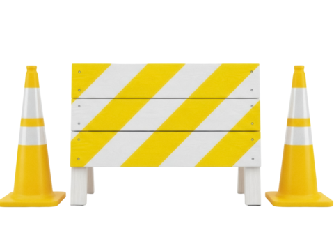 Isolated street construction barricade with orange cones, a safety caution for traffic flow