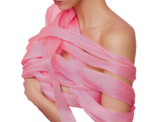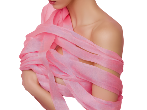 pink ribbon wrapped around body, poetic, beauty, lady, minimalist  png