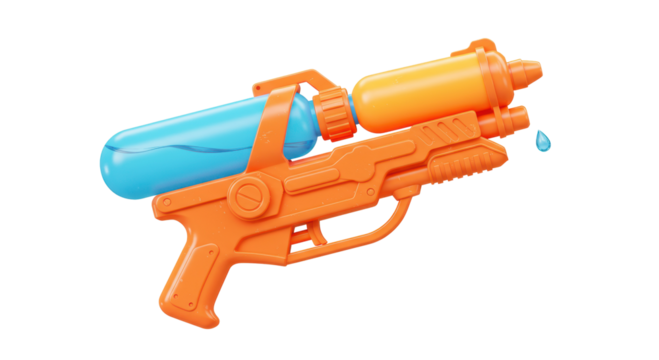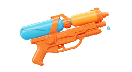 Toy gun blaster weapon play kids fun orange purple plastic shoot game object firearm futuristic design on transparent background