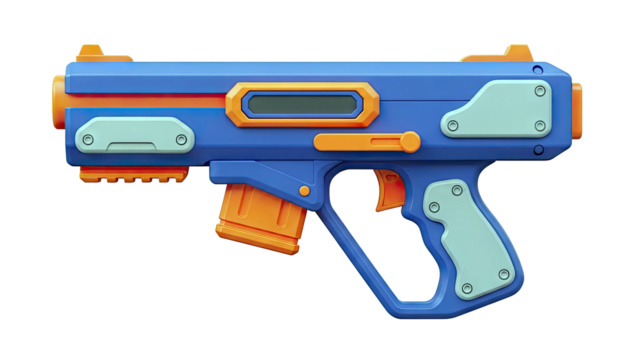Colorful Toy Gun: A vibrant close-up of a playful toy gun with various bright colors and an appealing design, perfect for fun and imaginative play.