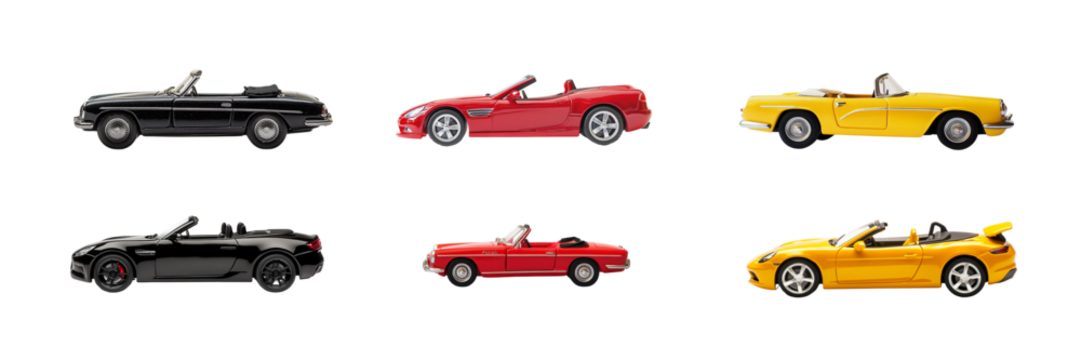 Brightly colored remote control car in red and blue with detailed features isolated on transparent background PNG